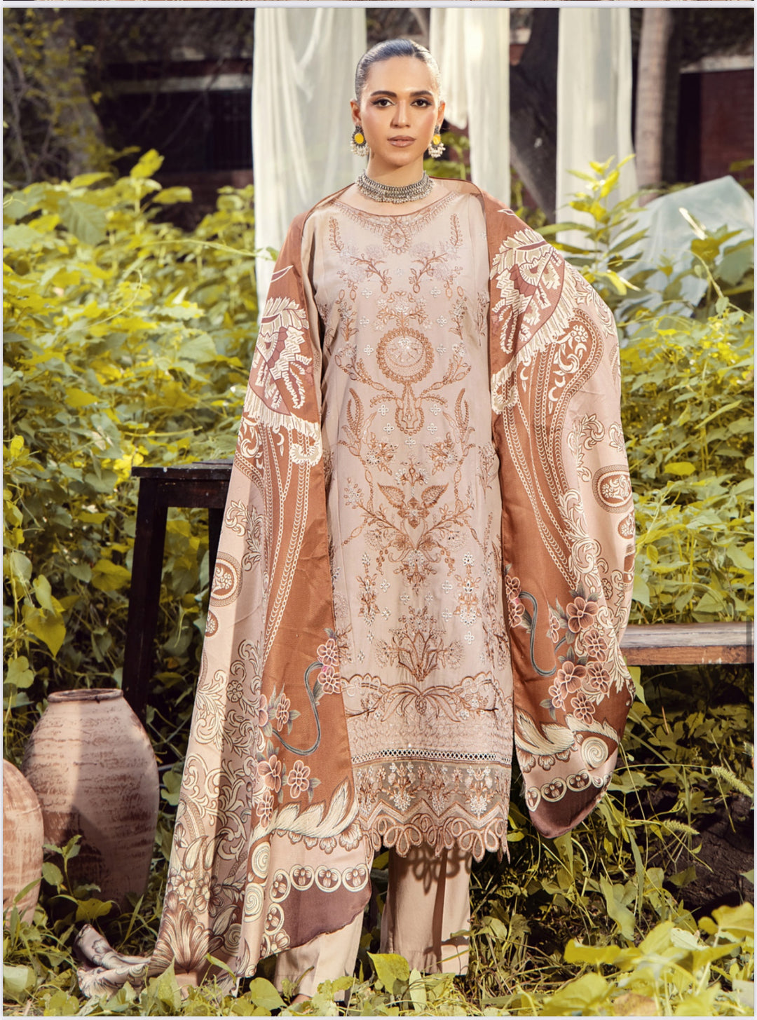 3 Pc Ready To Wear Embroidered Dhanak Suit -HE66-
