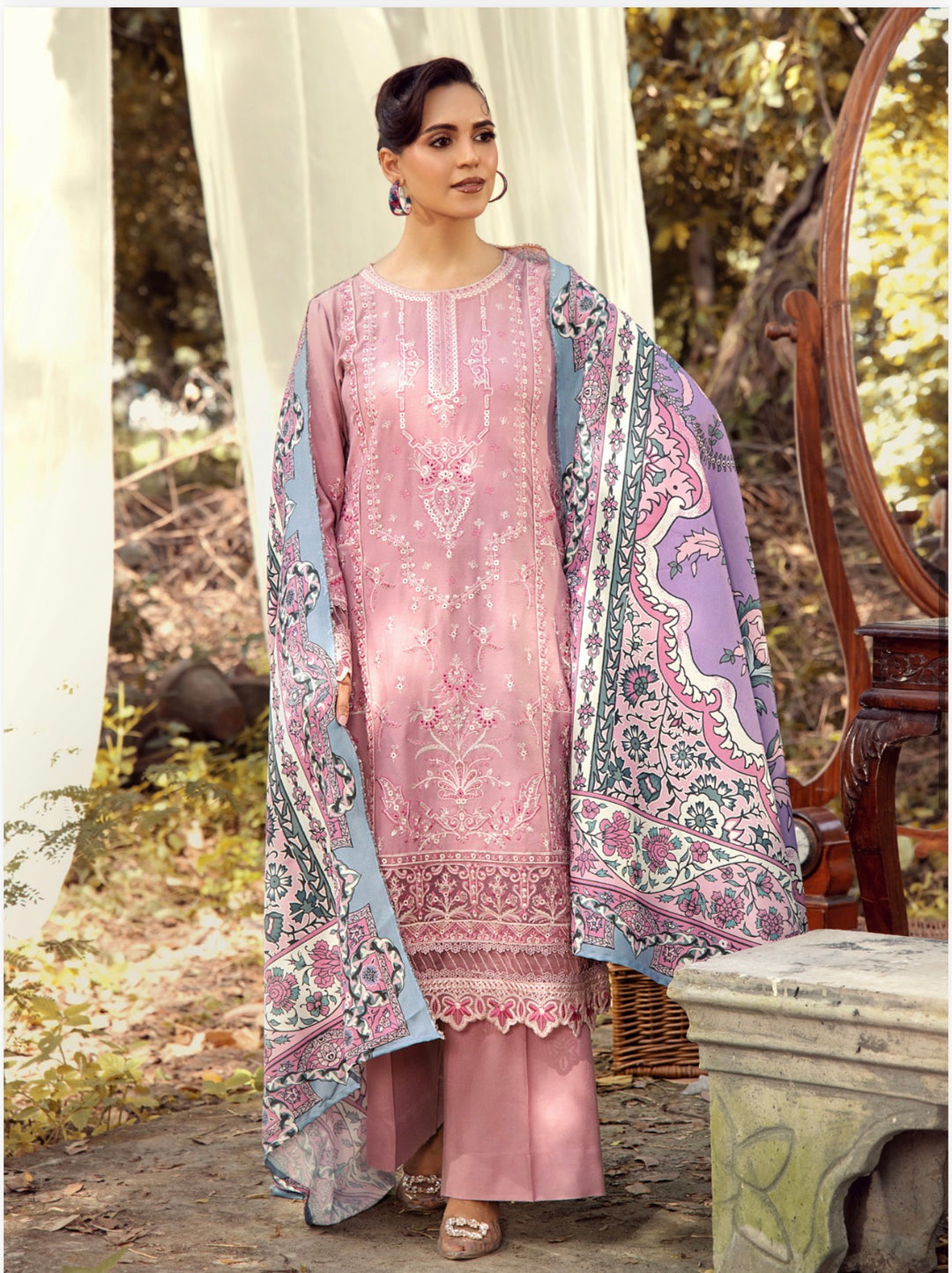 New 3 Piece Ready To Wear -Dhanak With Embroidered Shawl -RA-116-
