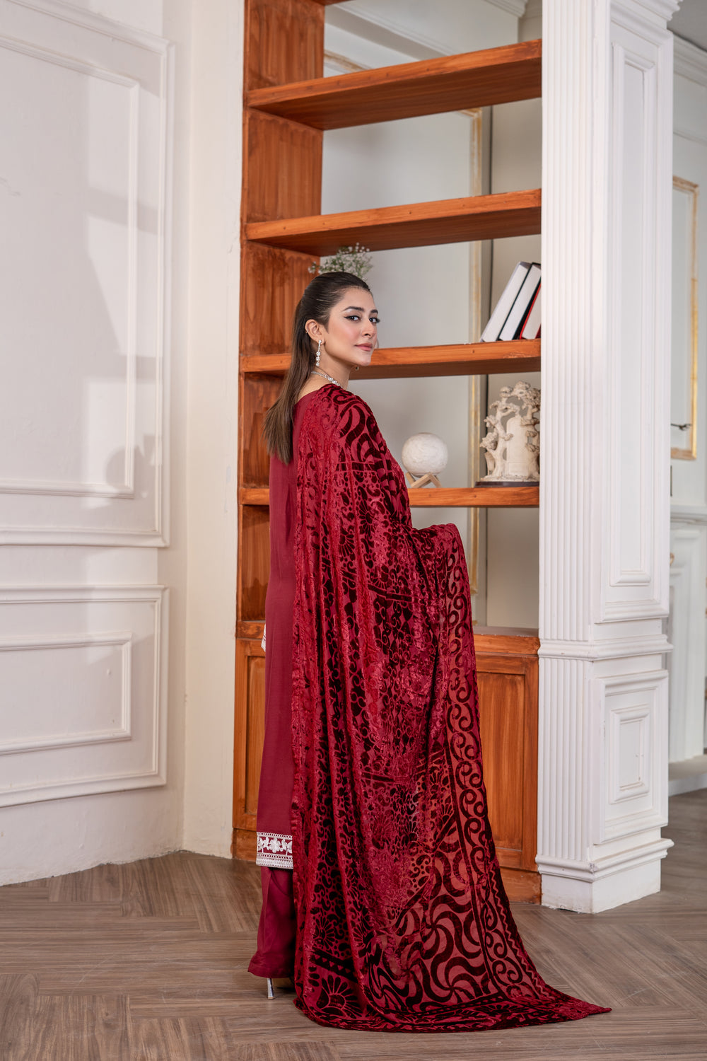 3 Pc Ready To Wear Embroidered Pashmina Velvet Suit -HE63-