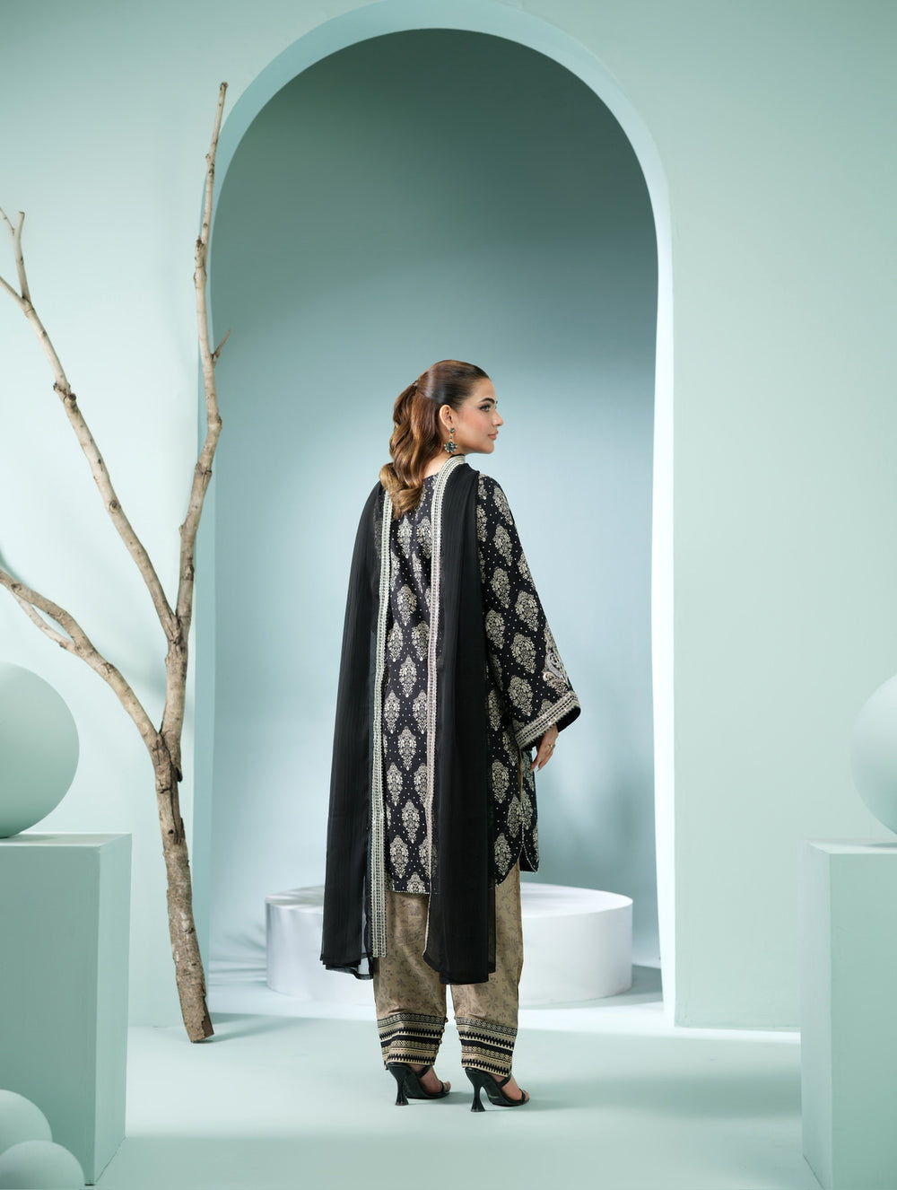3 Pc Ready To Wear Embroidered Suit -Black Orchid- HE81-