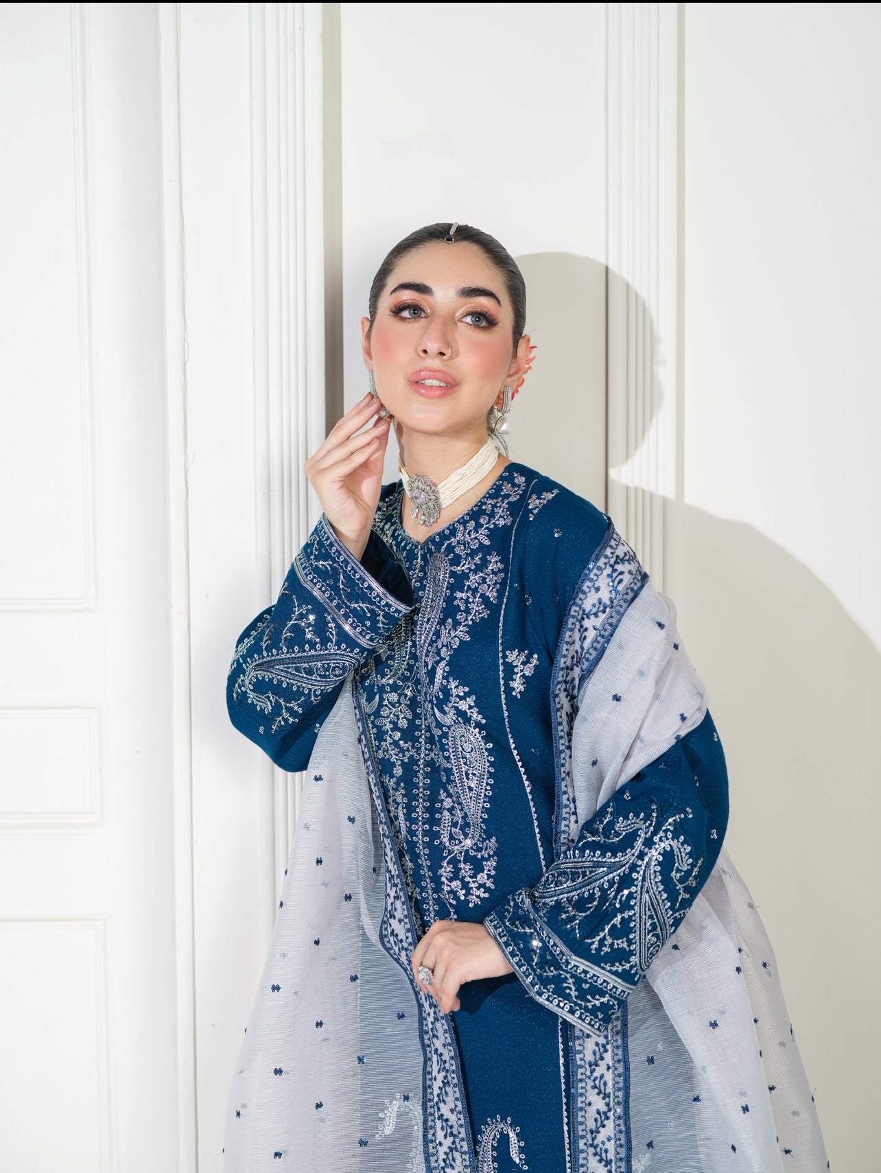 The set comes with a very beautiful Bareeze Net embroidered dupatta.