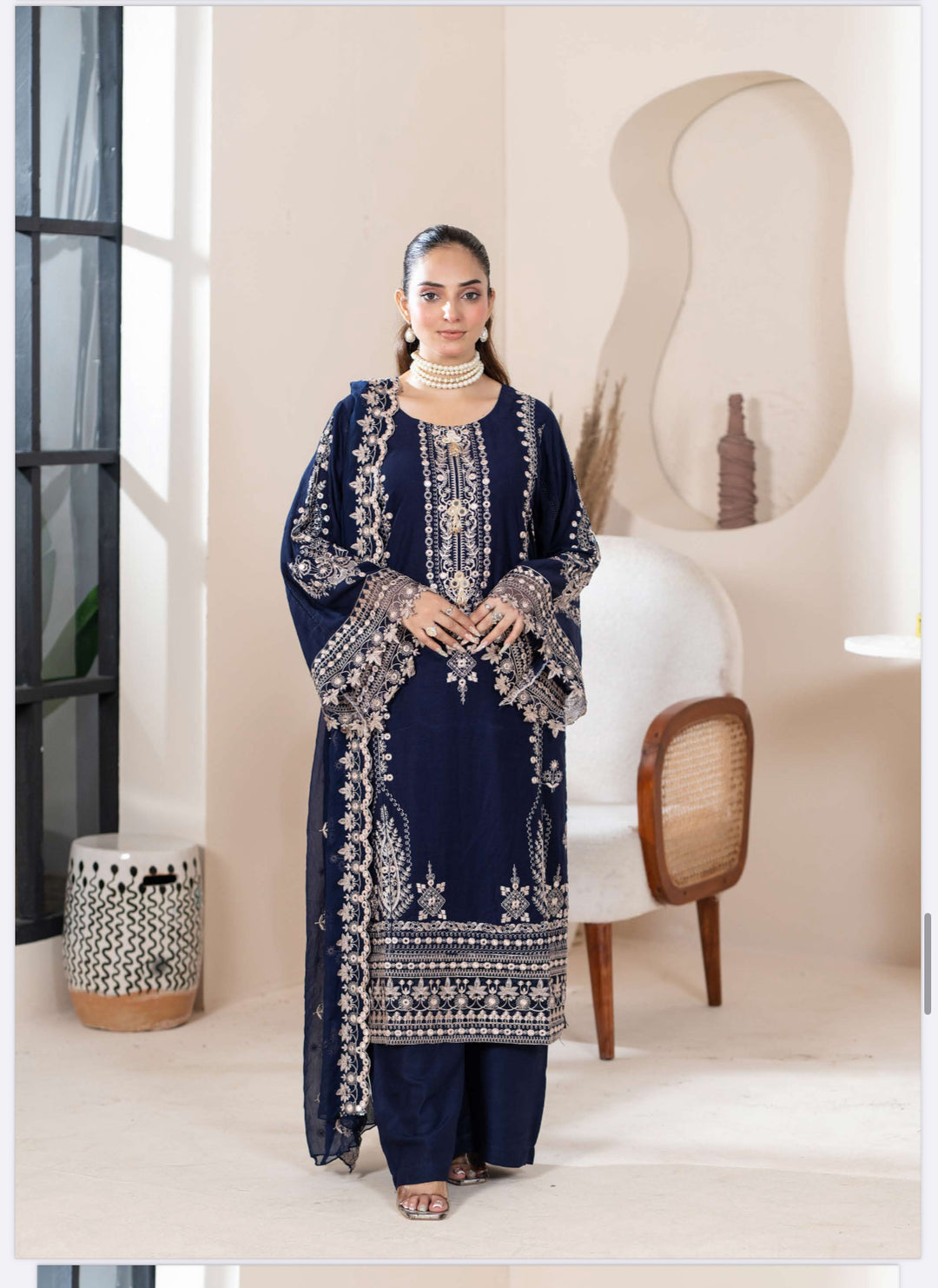 New Branded 3 PC Ready To Wear Viscose Fully Embroidered Suit- HE148-