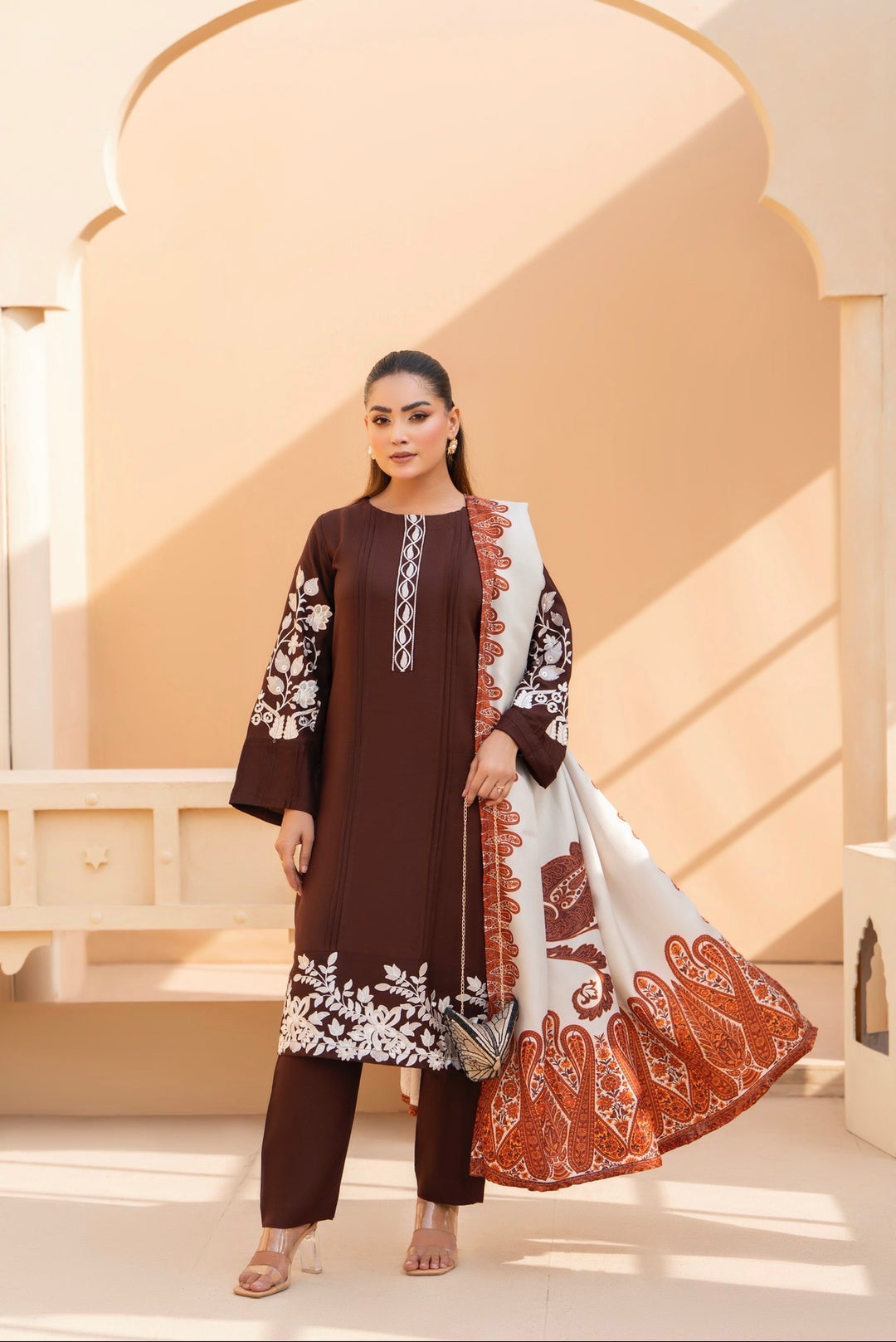 3 Piece Ready To Wear Dhanak Embroidered Suit -TT-104-