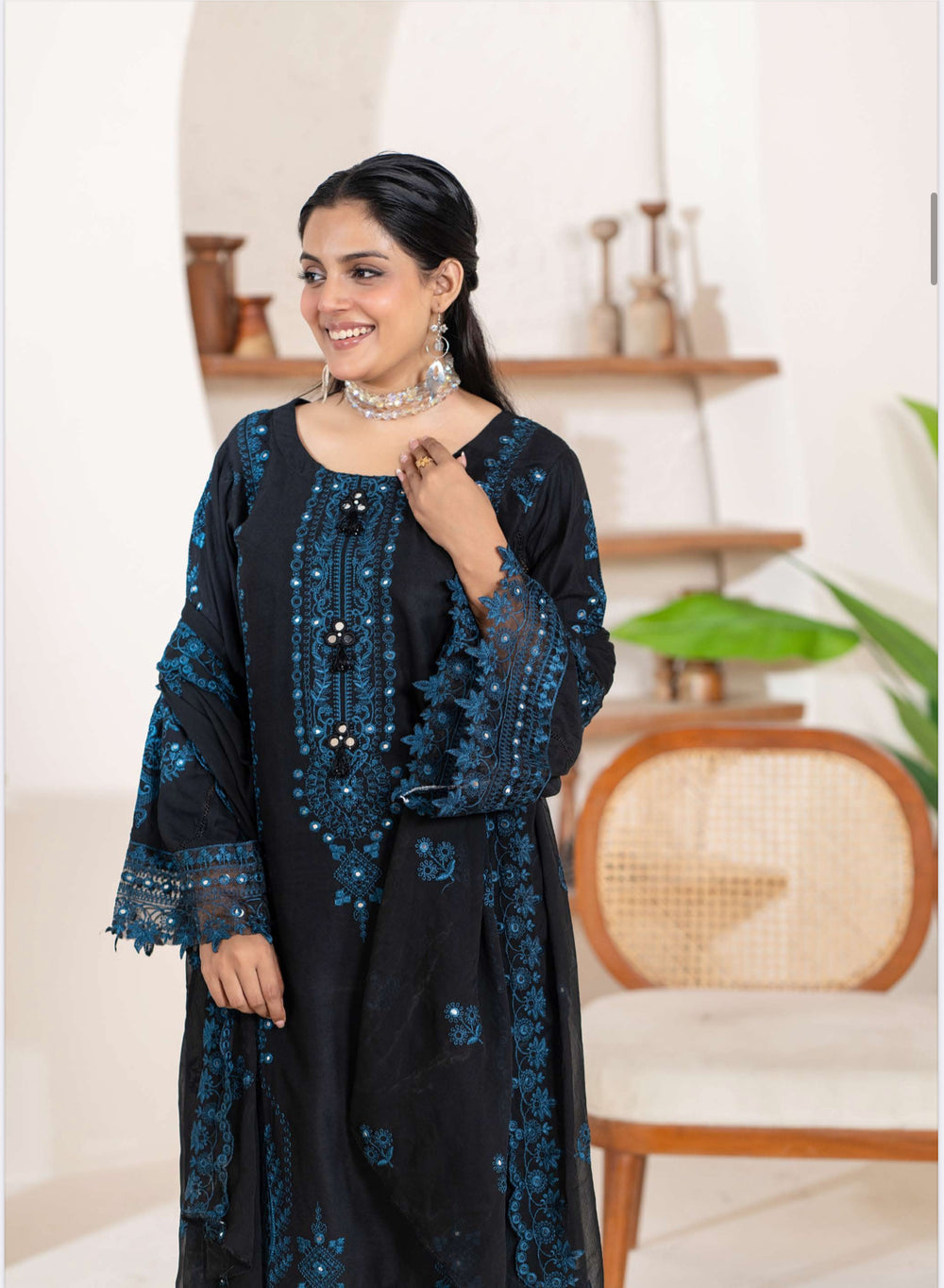 New 3 Piece Ready To Wear -Embroidered Linen Suit-- RR103-