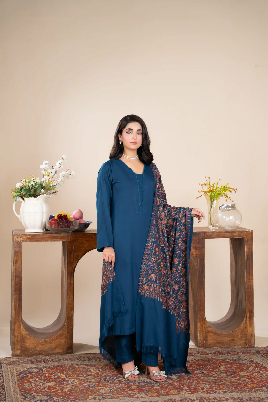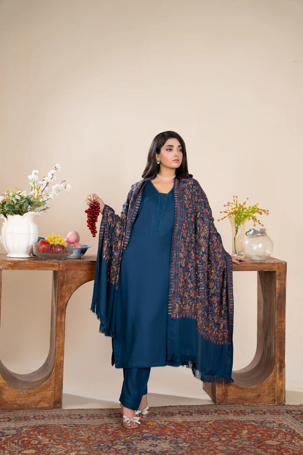 3 Piece Ready To Wear Dhanak Embroidered Suit -TT-103-