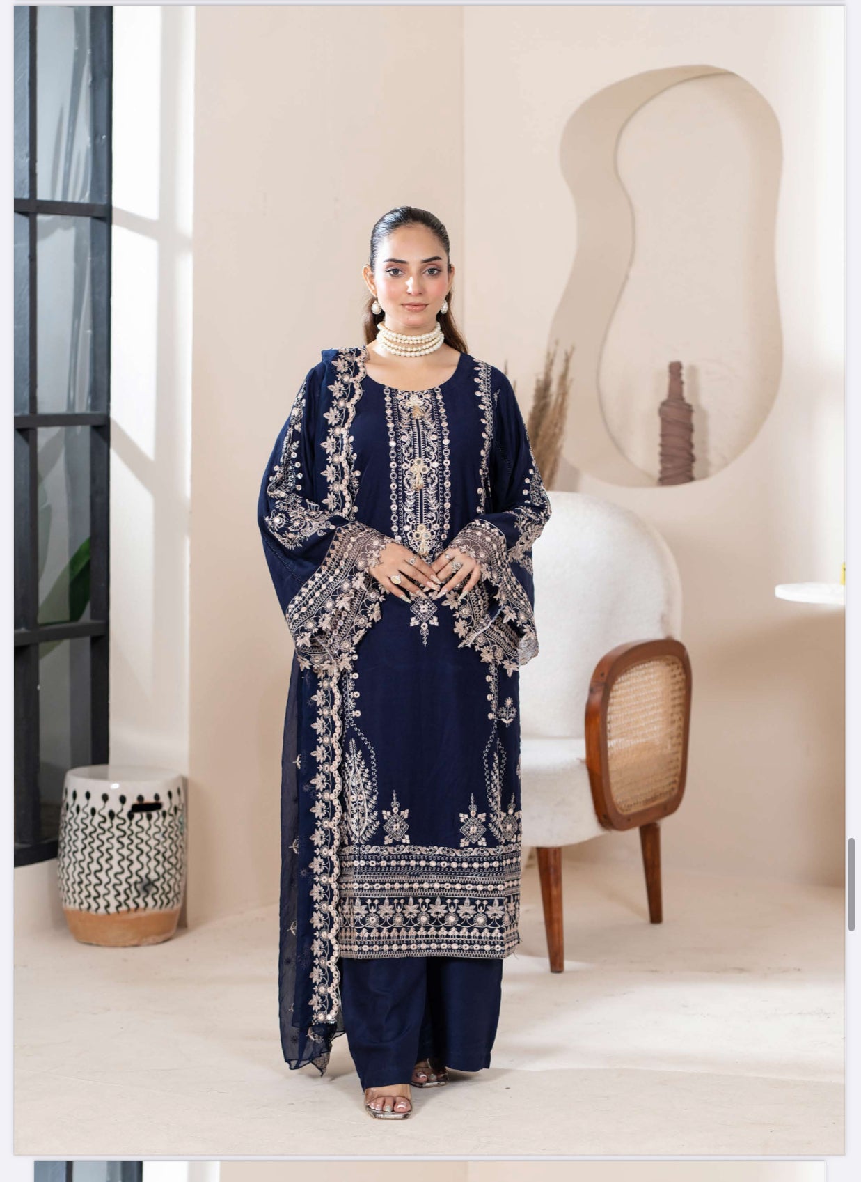 New 3 Piece Ready To Wear -Embroidered Linen Suit-- RR104-