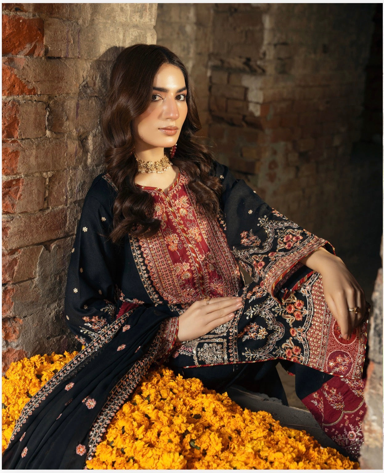 - Contrast Chiffon Dupatta with Embellished Detailing