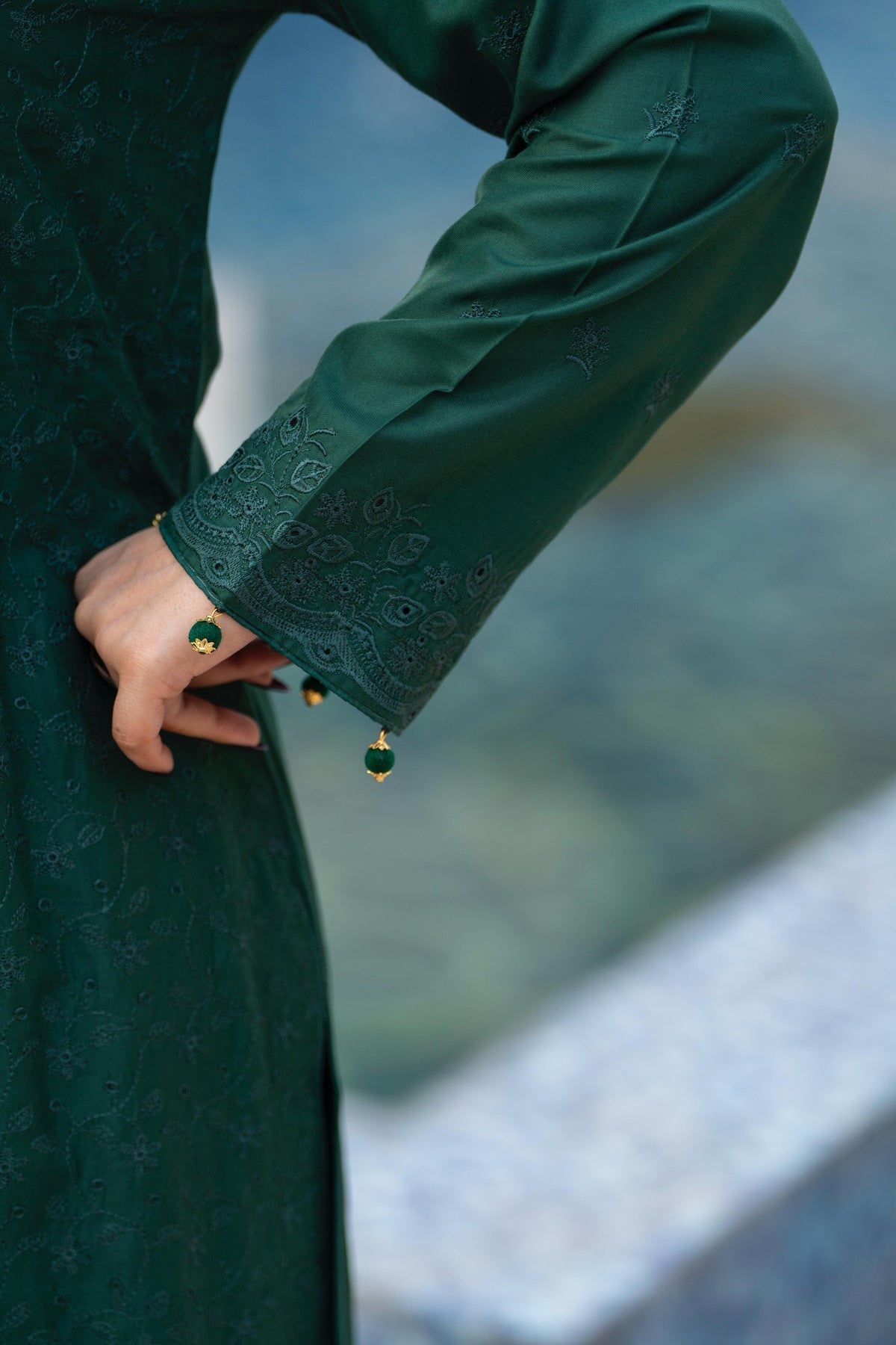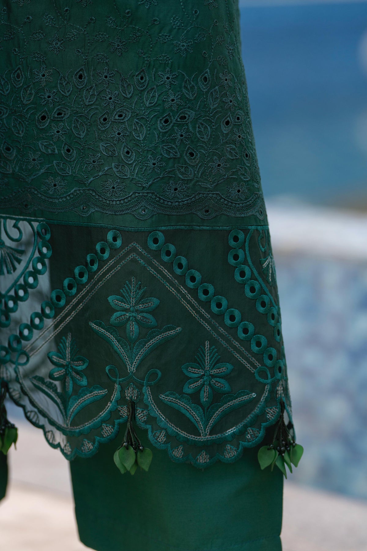 Elevate your wardrobe with this elegant 3-piece Chikankari embroidered suit, designed to combine traditional craftsmanship with modern style. The outfit features beautifully detailed embroidery on the shirt, complemented by a finely finished cutwork hem that adds a sophisticated touch. The set includes a matching dupatta and trousers, creating a complete and graceful look suitable for everyday wear, casual gatherings, or special occasions.