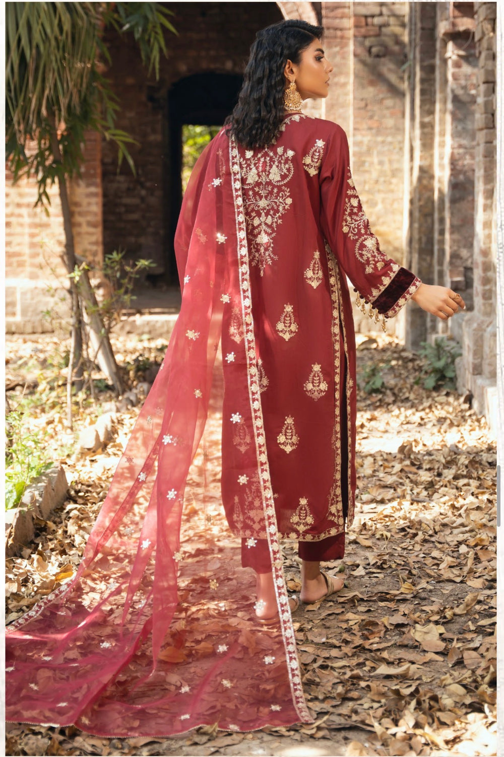 - Contrast Chiffon Dupatta with Embellished Detailing